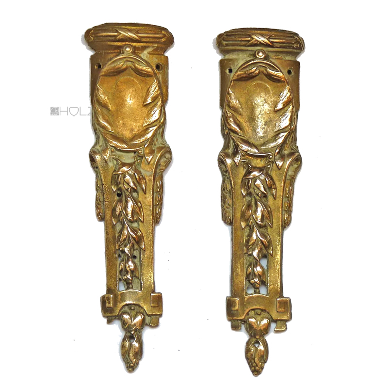 Bronze Möbel Beschlag feuervergoldet Lorbeer Paar 15cm