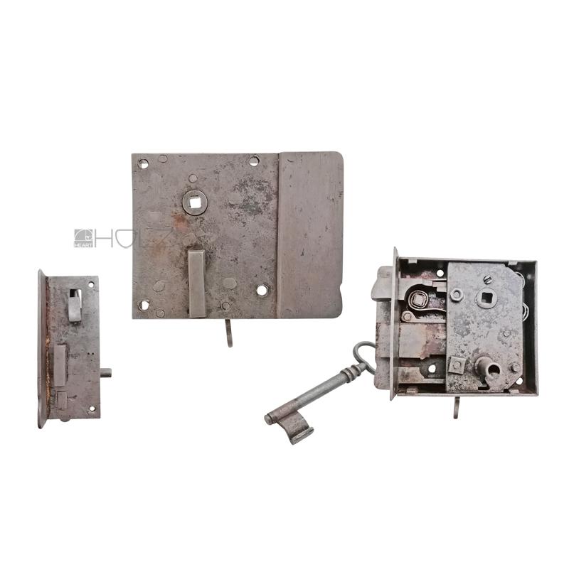 Ein Kastenschloss aus der Zeit um 1905 , mit Schlüssel und Handriegel