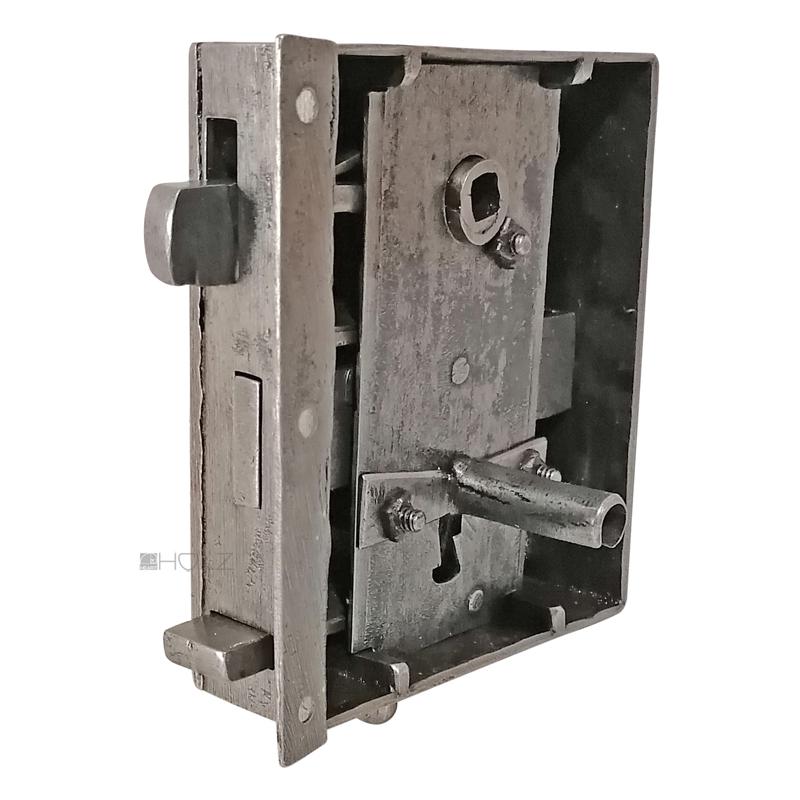 Kastenschloss , vermutlich aus der Mitte des 19. Jhdts. , schonend aufbereitet und mit Leinöl behandelt .