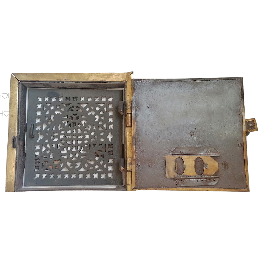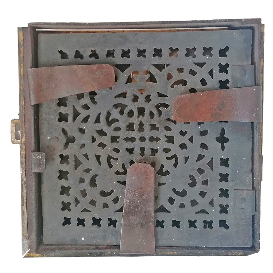 Ofentür Kamitür antik Eisen Messing alt Küchenhexe 24cm
