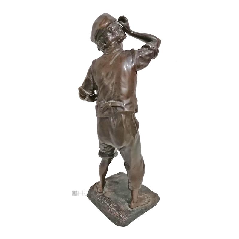Paul Ludwig Kowalczewski Bronze Figur Junge mit Pfeife 23cm