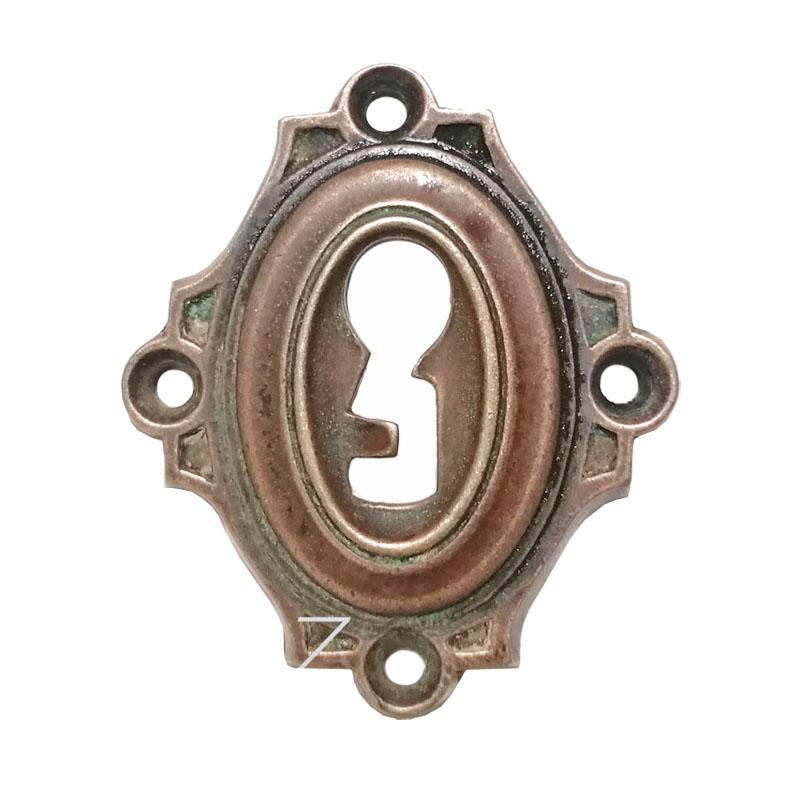 Schlüsselschild antik groß oval Gründerzeit Schlüsselrosette alt Messing