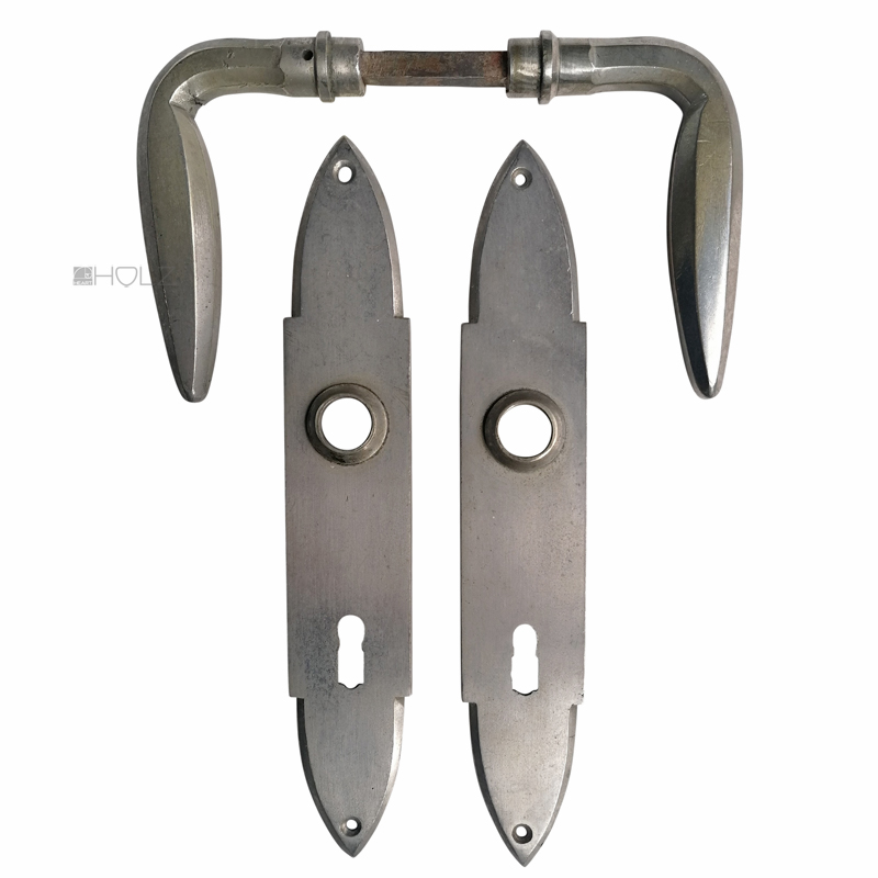 Tür Drückergarnitur alt 1920er Avantgarde spitz polygon vernickelt 8er Vk 72