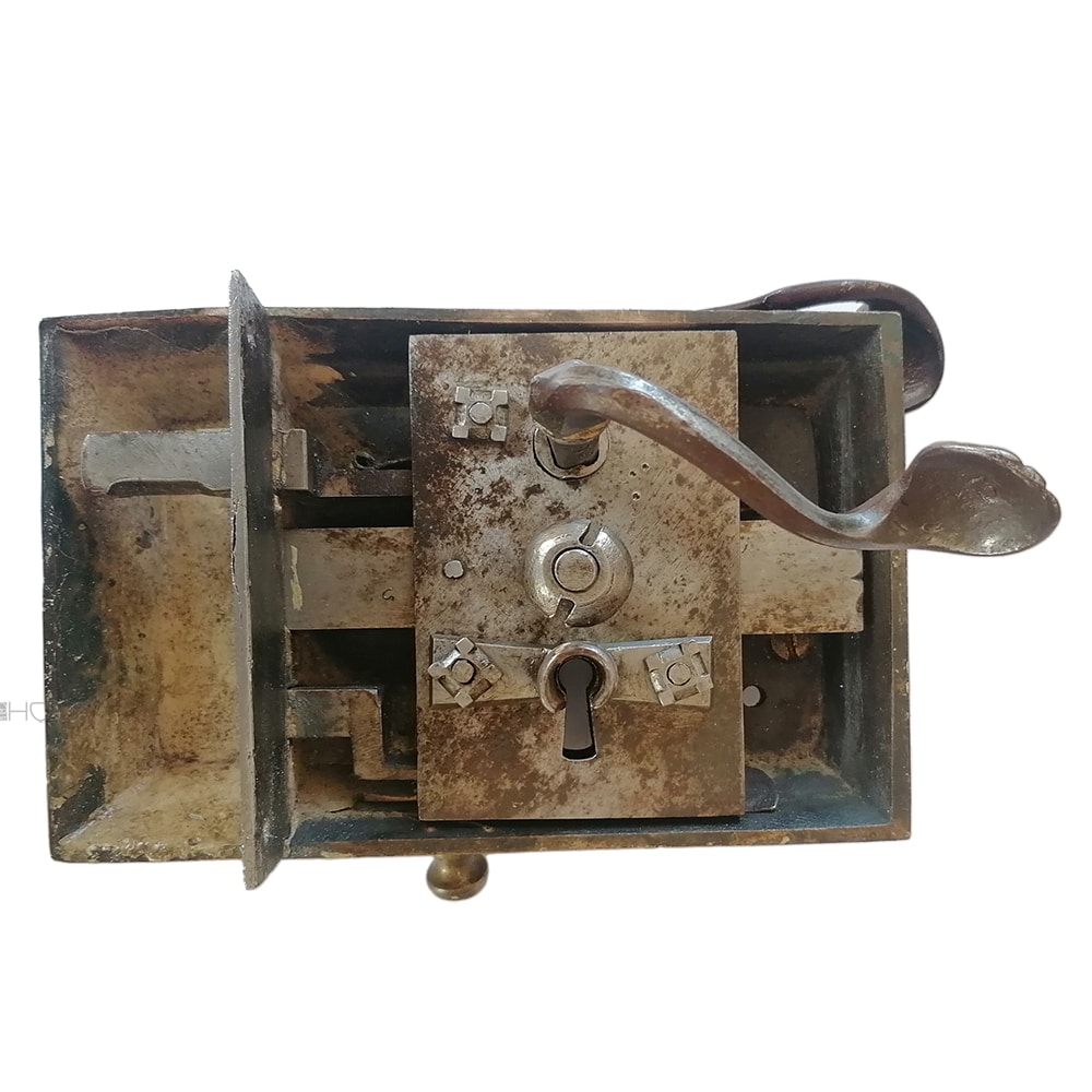 Tür Kastenschloss antik Biedermeier alt Messing Knebeldrücker links 62/52